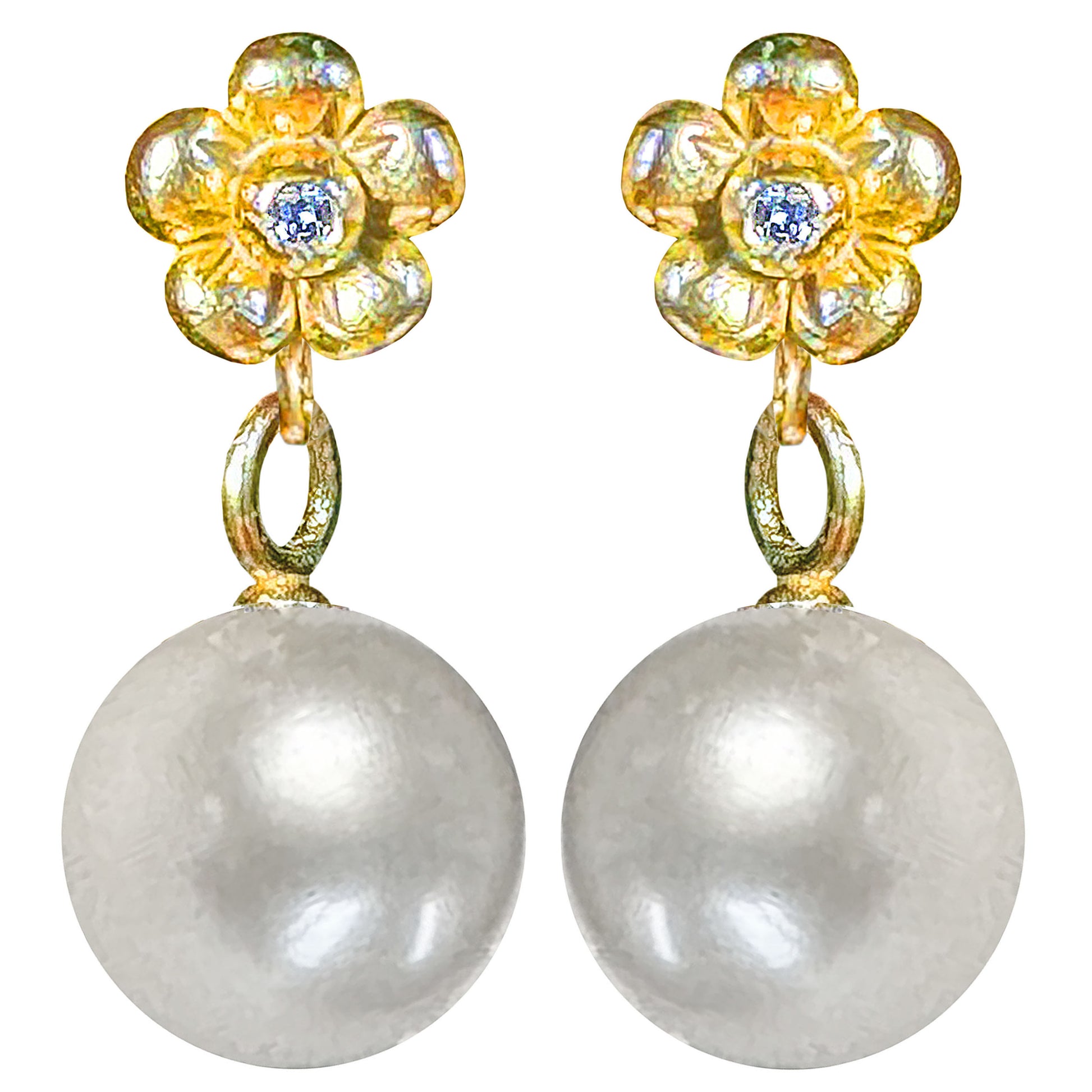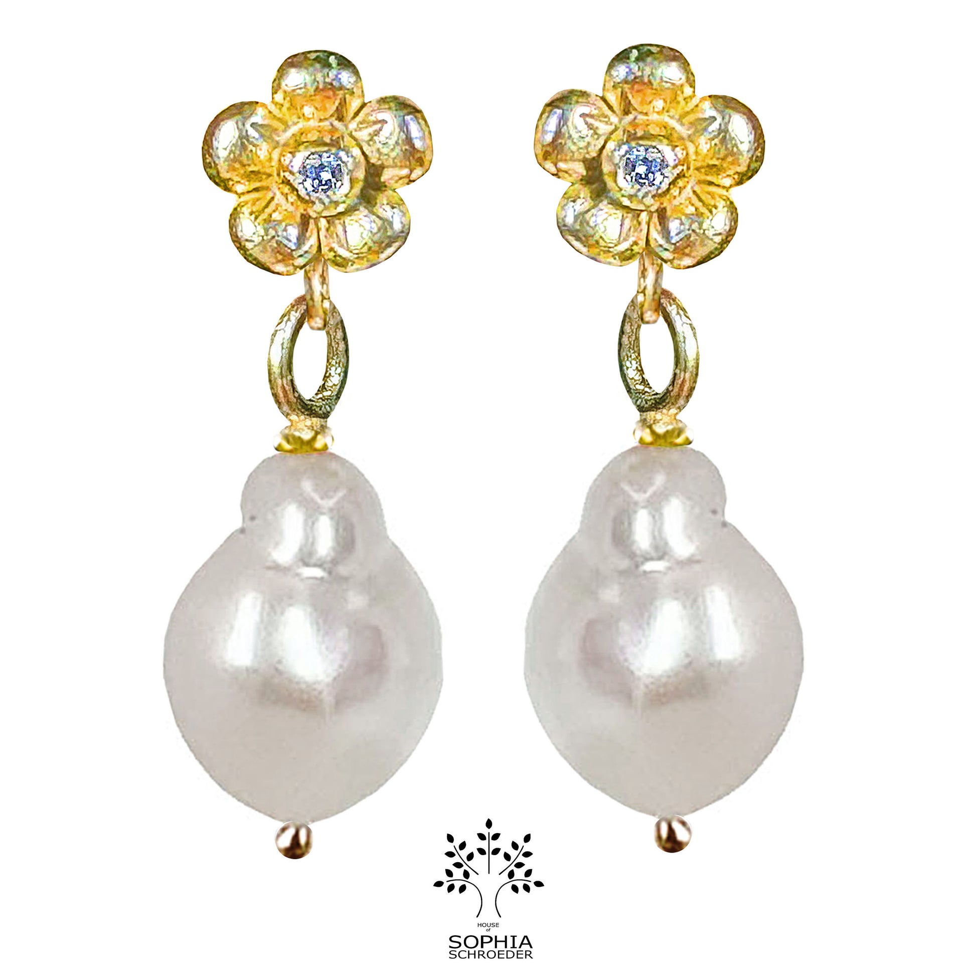 Lovechild Ear Stud is 6mm and Flower has a 1,3mm natural Micro Diamond with dangling Freshwater Pearl