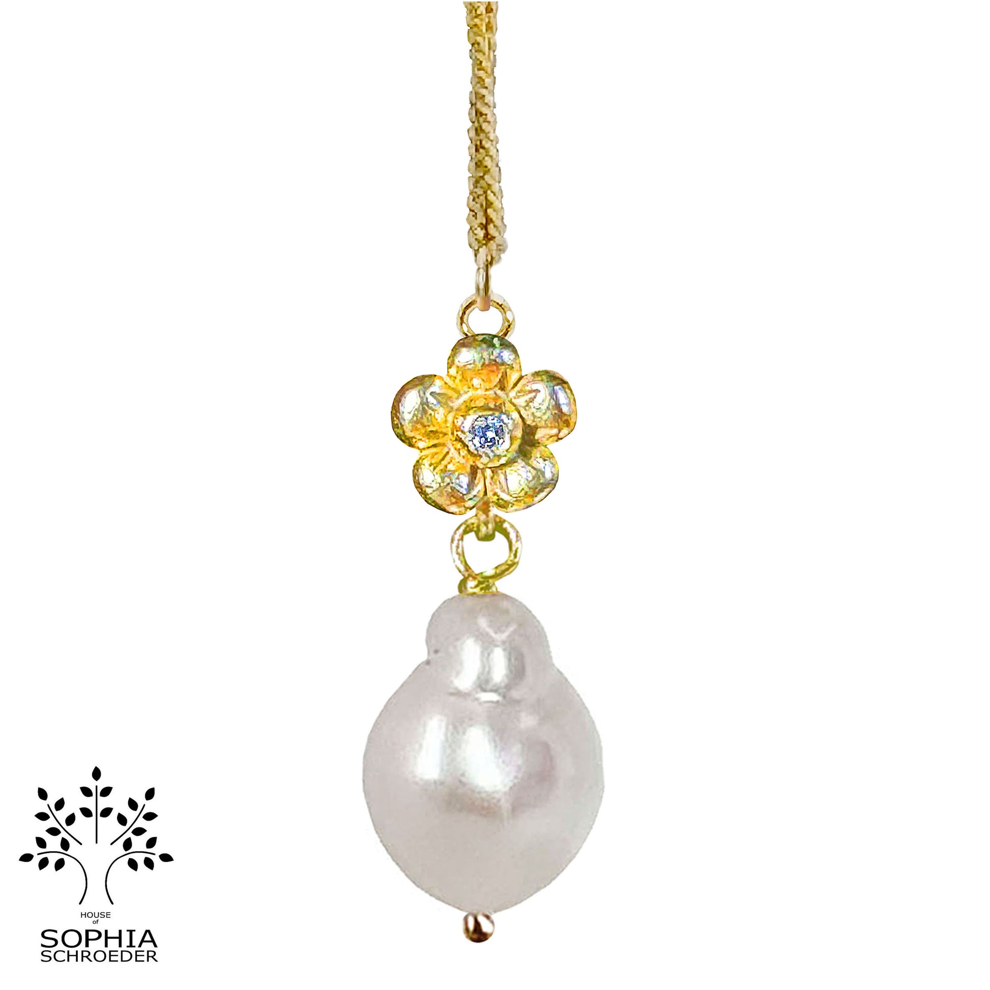 a 8mm x 10mm Baroque Freshwater Pearl. Baroque pearls are truly unique, not two are the same! They have bumps, folds and may have dark spots. A true gift from Mother Nature.