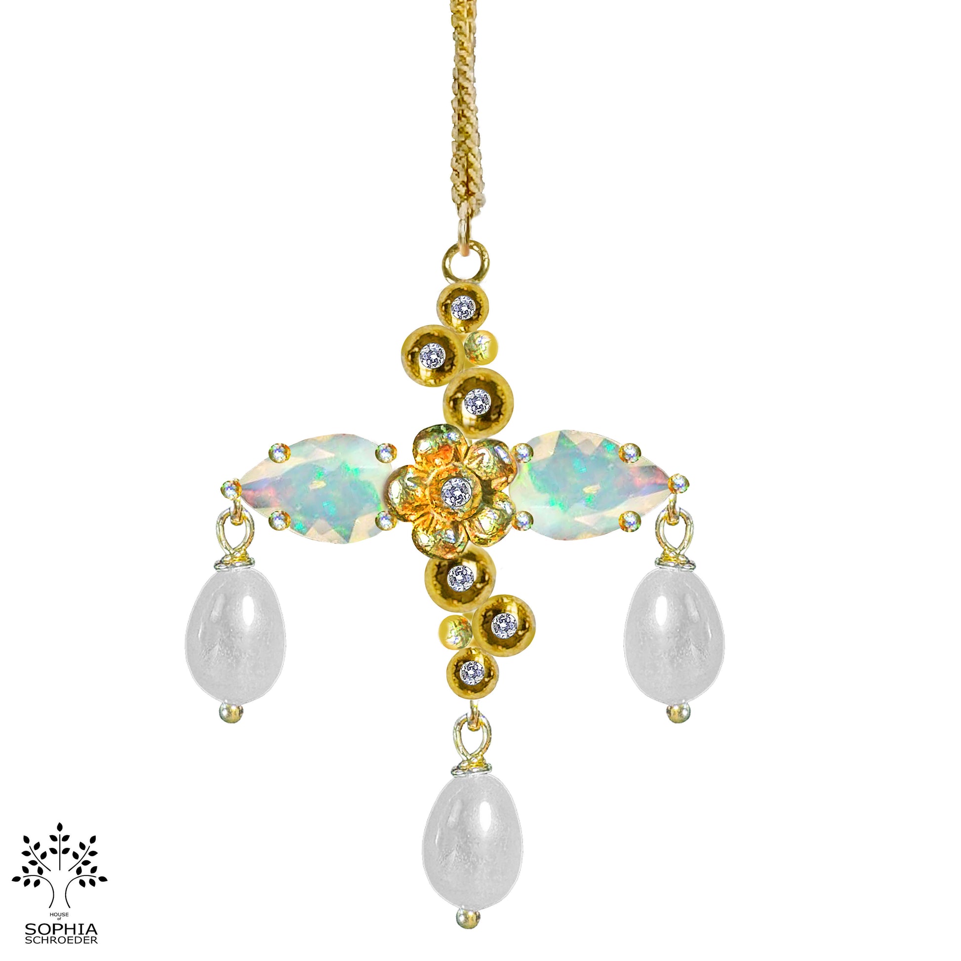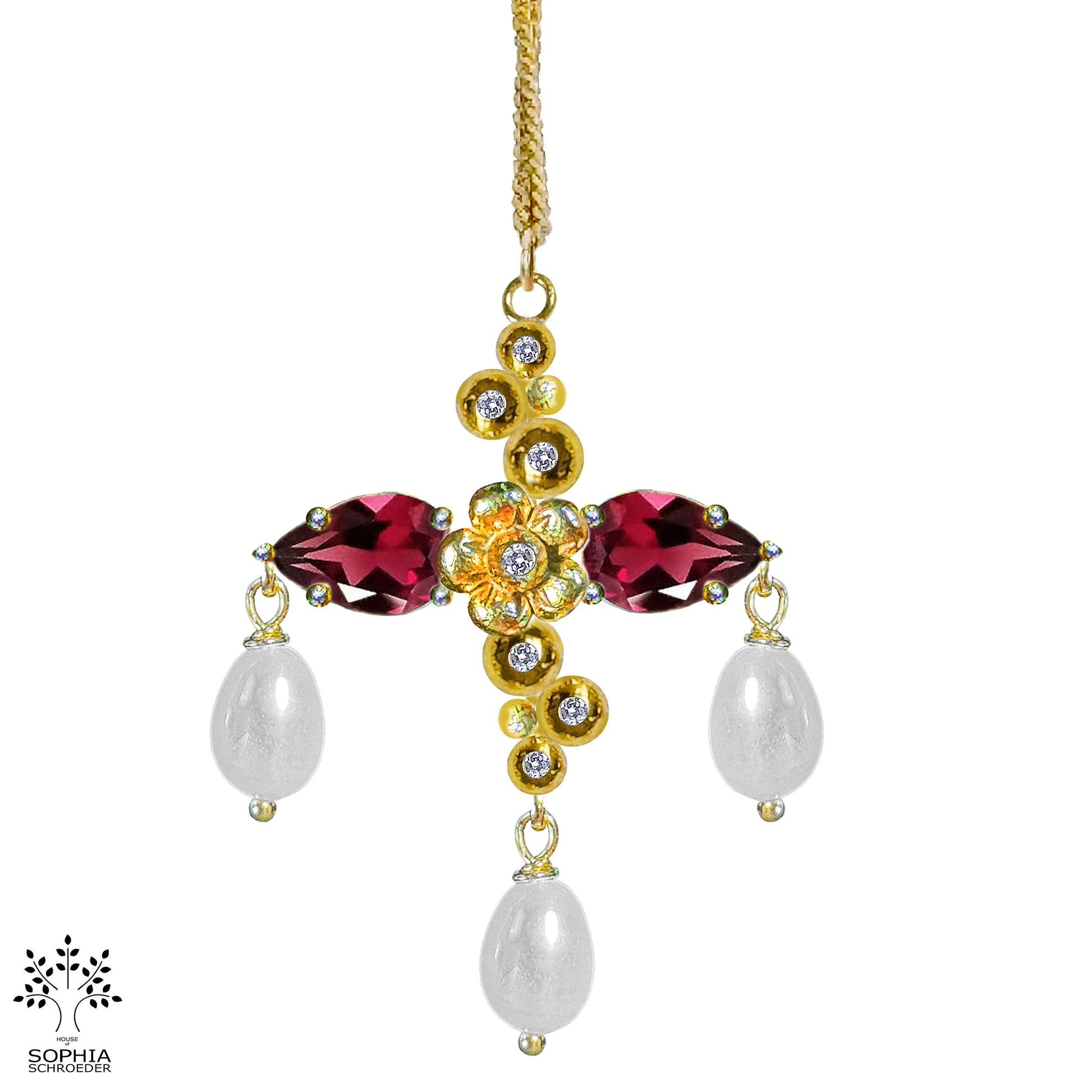 Lovechild Sparkle Cross Pendant with 3pcs dangling Freshwater Pearls