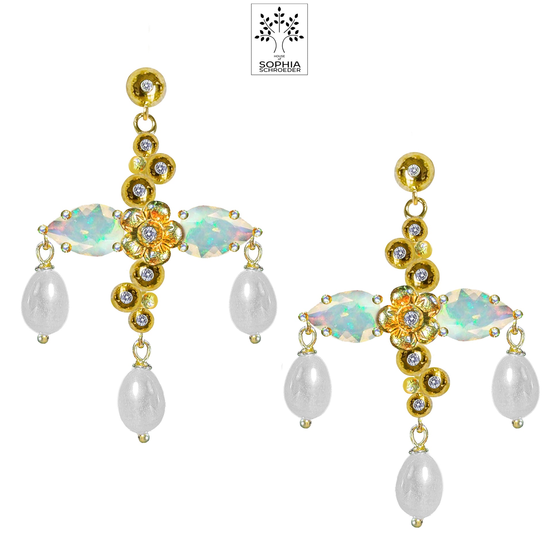 Lovechild Sparkle Cross with 3pcs dangling Rice Freshwater Pearls