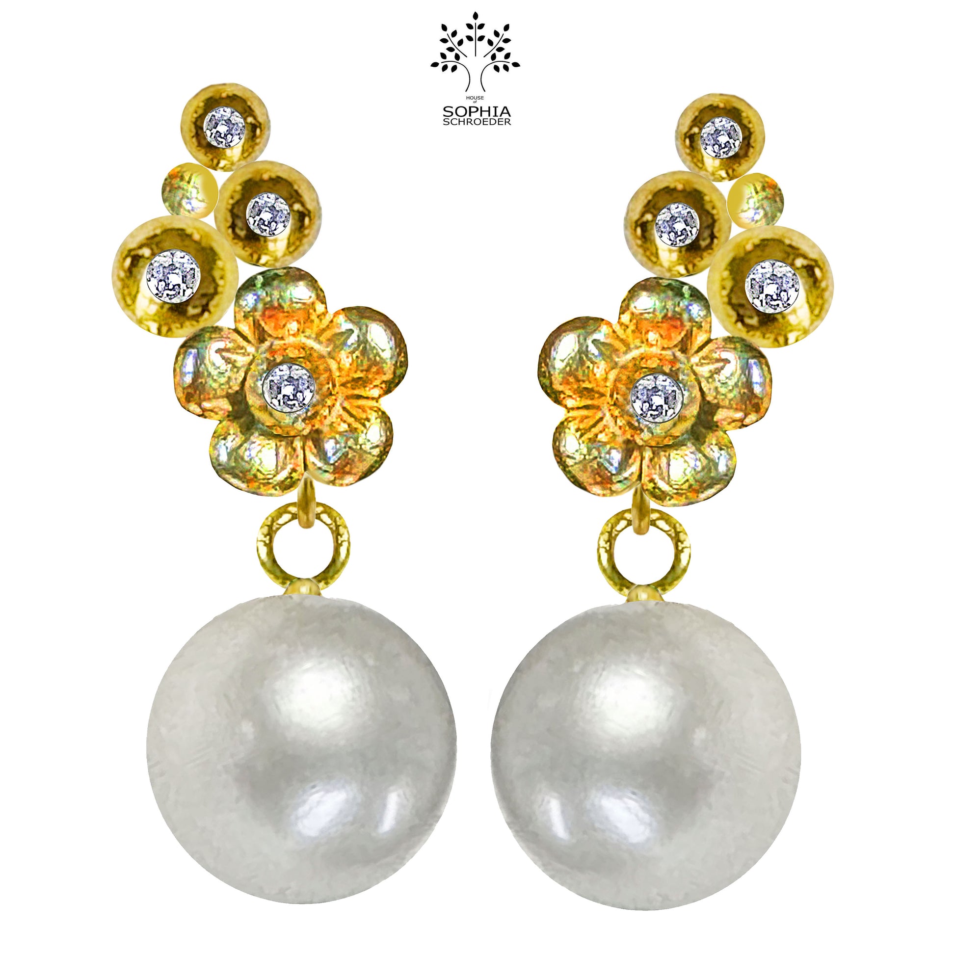 Lovechild Sparkle Ear Stud with dangling Freshwater Pearl