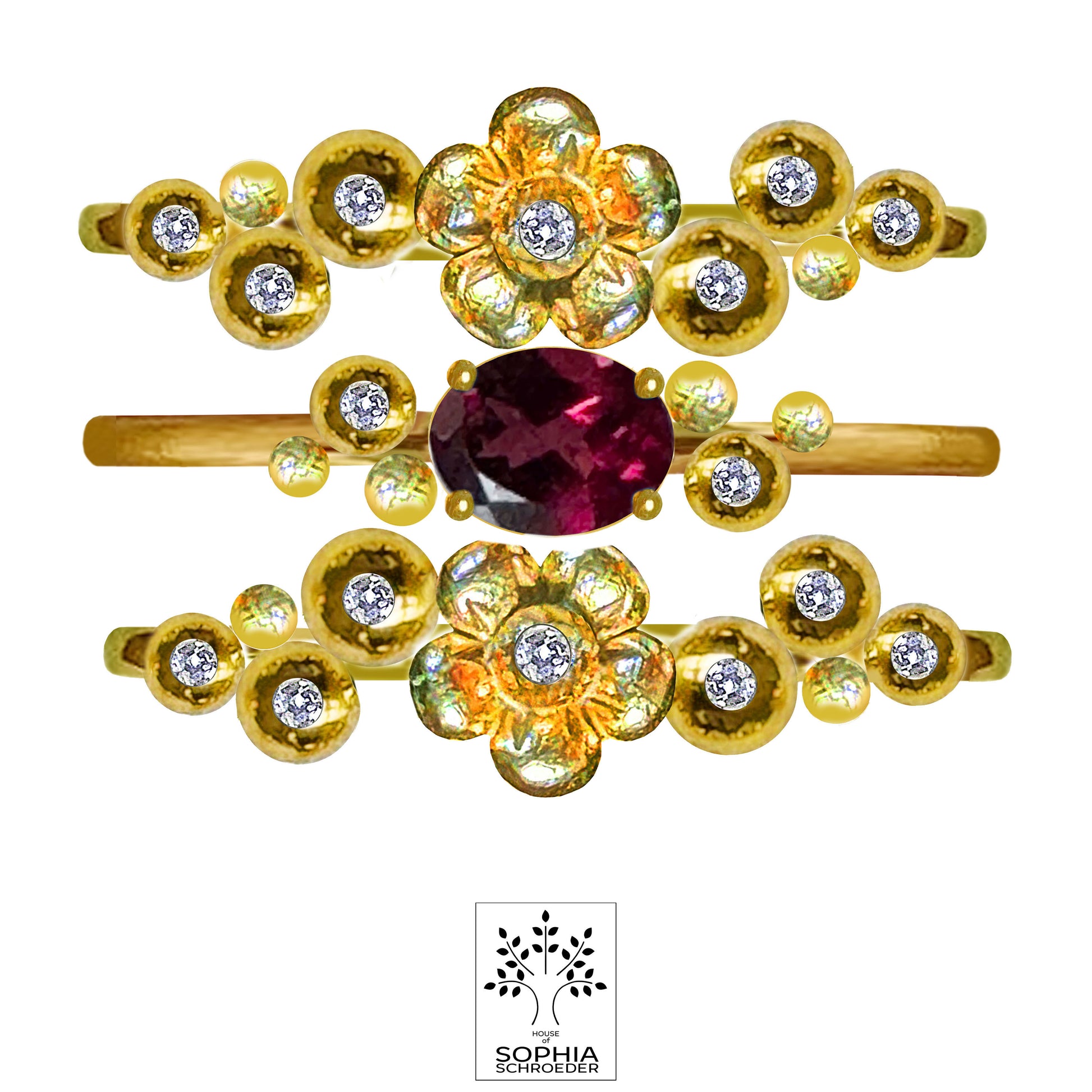 Lovechild Sparkle ring set of 3pcs rings with Red Garnet or Ethiopian faceted Opal